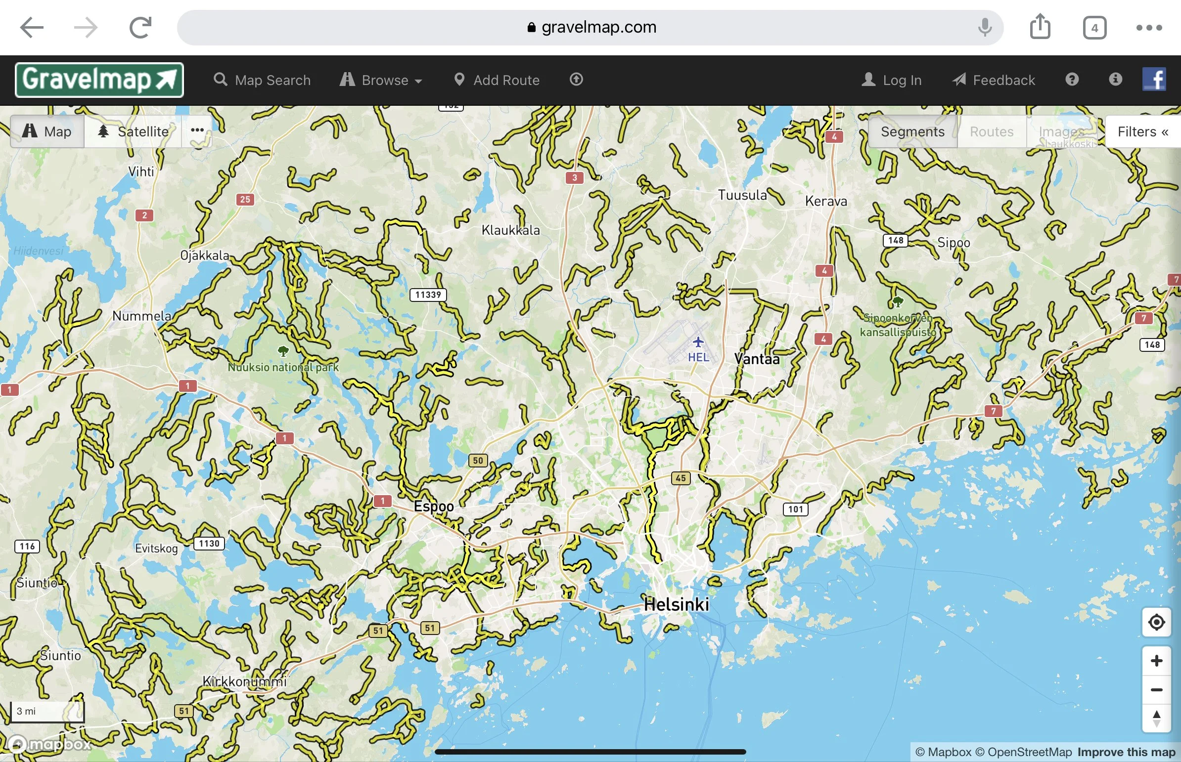 Gravelmap.com – Täältä näet jo jonkun hyväksi totetamat gravel-segmentit ja pystyt helposti löytämään potentiaalisia lisäosuuksia reiteille.