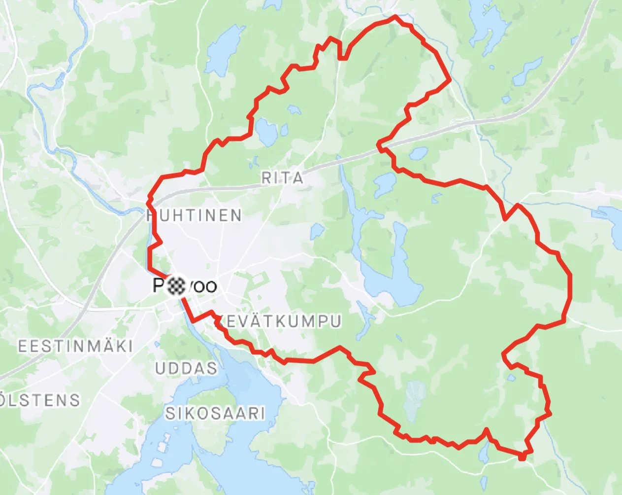 Todella monipuolinen gravel-reitti Porvoossa. Reitin pituus noin 45 km. Reitin alku- ja päätepiste Porvoon vanhassa kaupungissa.